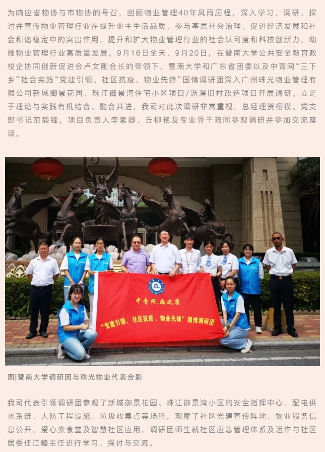 【党群之声】暨南大学“党建引领、社区抗疫、物业先锋”国情调研团深入珠光物业开展调研